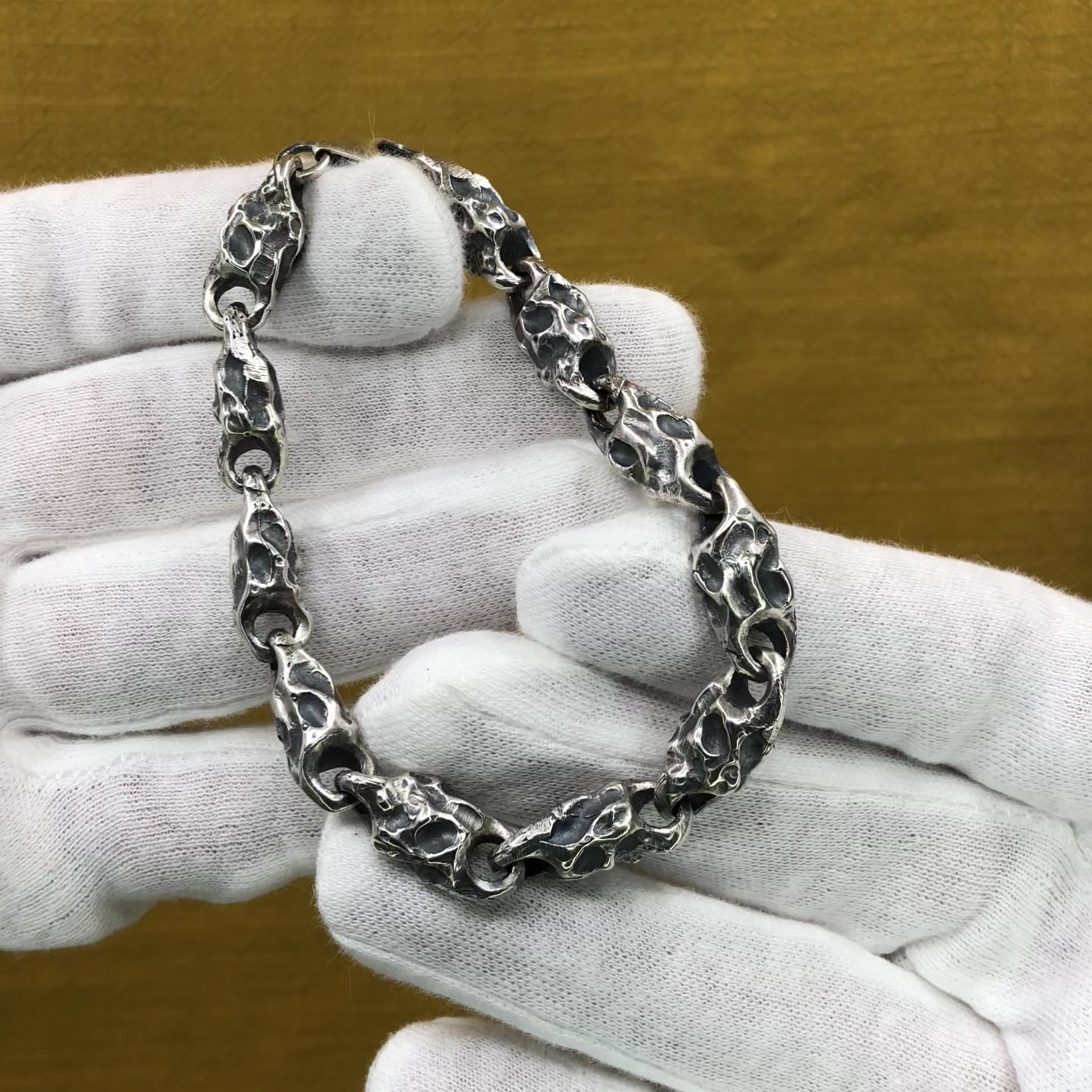 Strong heavy chain links with alien-like texture. Handcrafted from solid 925 sterling silver.